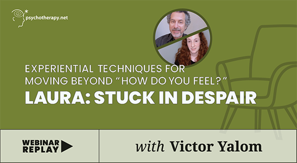 Was tun Sie, wenn Ihr Klient jede Sitzung damit verbringt, über seine dunklen Gefühle zu sprechen, und Sie sich festgefahren fühlen und nicht sicher sind, wie Sie ihm bei der Heilung helfen können? Wie können Sie ihnen helfen, Fortschritte zu machen? In diesem aufgezeichneten Webinar berät Victor Yalom, Gründer von Psychotherapy.net, Laura, eine Ärztin, die sich festgefahren und von einem jungen, depressiven Klienten getrennt fühlt. Durch Rollenspiele und Diskussionen demonstriert Yalom Techniken, um den Kreislauf zu durchbrechen, in Sitzungen über dunkle Emotionen zu sprechen und sie stattdessen zu spüren, was zu Einsichten führen und Wachstum fördern kann.